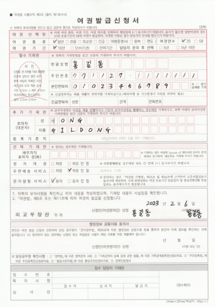 여권발급신청서는 발급처에 방문해서 작성하면 되므로 미리 준비하실 필요는 없습니다.