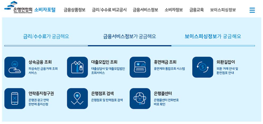 번거롭지 않게 은행 연합회 소비자 포털싸이트에 들어가시면 한눈에 보실수 있습니다.